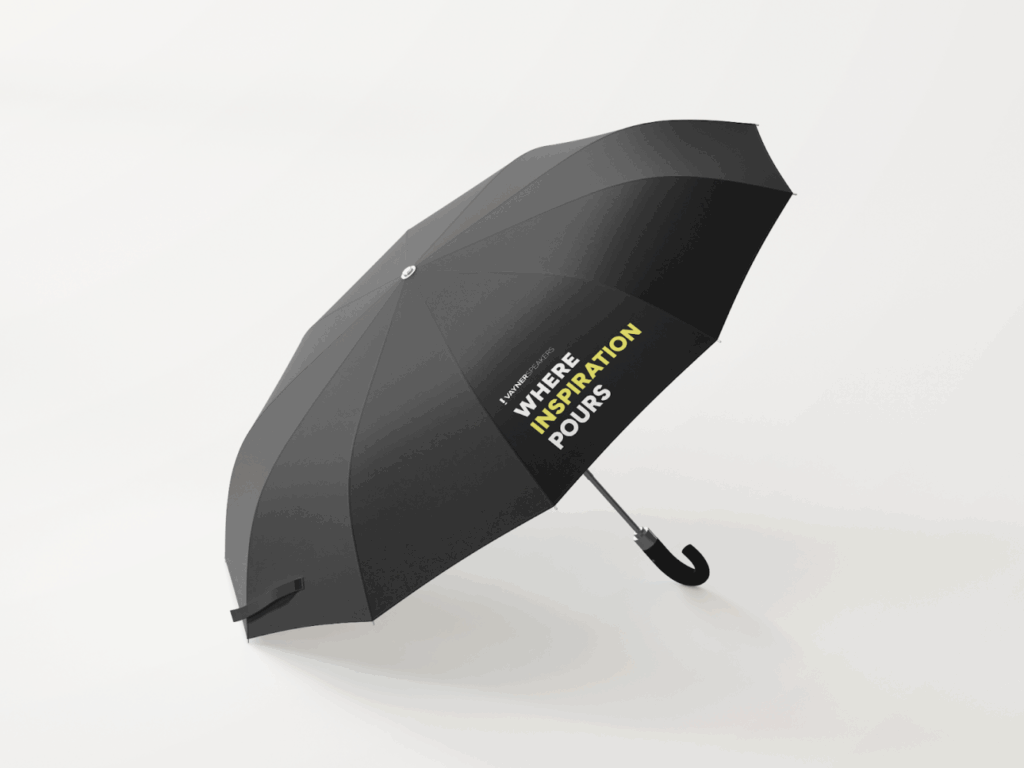 We loved the idea of creating something unexpected—and what’s more unexpected than a branded umbrella? It’s more than clever wordplay; it’s a metaphor for what we do. We show up when you need us, provide direction, and make sure inspiration flows where it’s needed most.